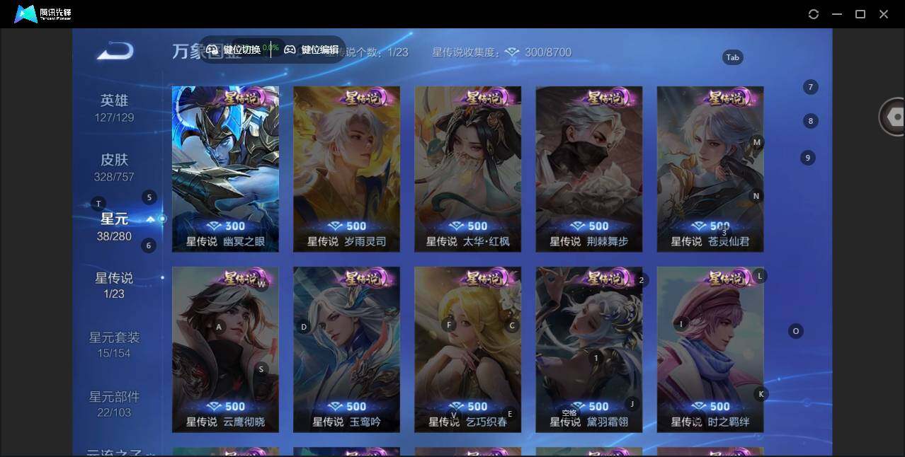 - [11528965]V6 3传说 123英雄 161皮肤 可修改实名 传说皮:幻光神枪 珍宝阁皮:蔷薇恋人 限定皮:愿照·九州拓(澜年限),愿照·岁时盈(虞姬年限),遇见飞天,游园惊梦,梁祝,李小龙,逐梦之影 史诗皮:化蝶舞,龙之律动,雪豹·霜爪,茶境仙,紫霞仙子,末日机甲-吕布,节奏热浪,水果甜心,暗隐猎兽者,诗语江南,纤云弄巧,繁星吟游(呼啦呼啦),缤纷独角兽,乘风破浪,逐浪之夏,曙光守护者,原初追逐者,鹰眼统帅,魅力维加斯