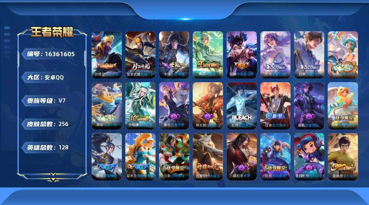 [16361605]【店主推荐捡漏号!可直接换绑】安卓Q-V7-永恒钻石I段位-128英雄-248皮肤-1典藏皮肤-1珍品传说-5传说-55史诗
