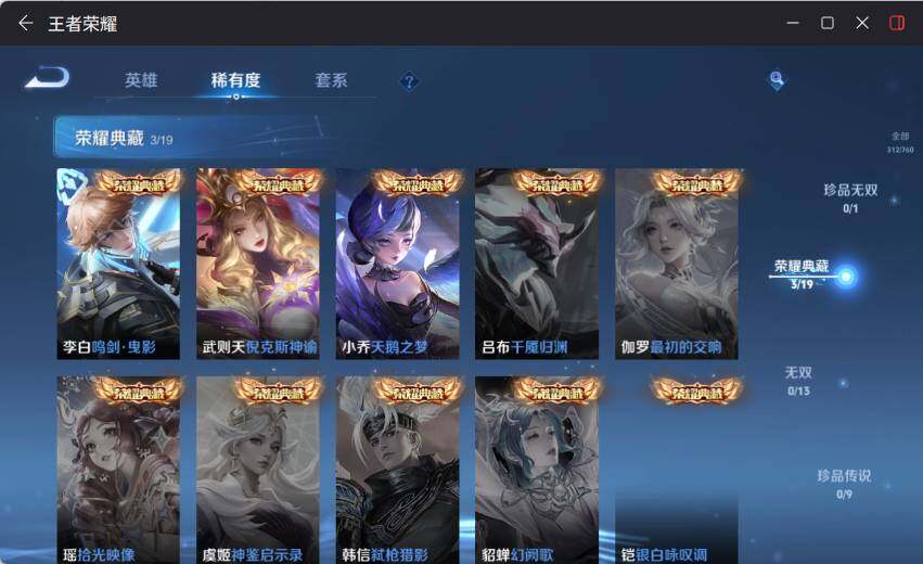 【荣耀典藏】:武则天英雄,武则天倪克斯神谕,小乔天鹅之梦,李白鸣剑曳影