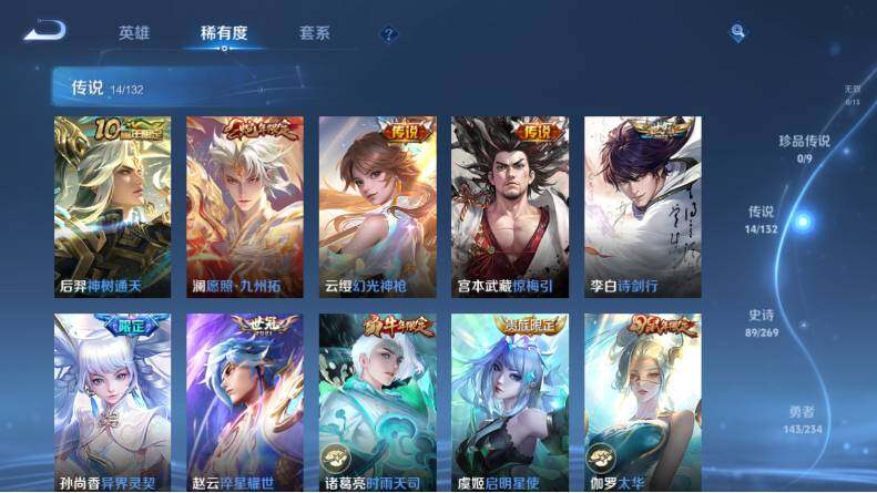 【传说皮肤】:后羿神树通天,澜愿照九州拓,云缨幻光神枪,宫本武藏惊梅引,李白诗剑行,孙尚香异界灵契,赵云淬星耀世,诸葛亮时雨天司,虞姬启明星使,伽罗太华,虞姬云霓雀翎,后羿黄金射手座,孙尚香末日机甲,狄仁杰超时空战士