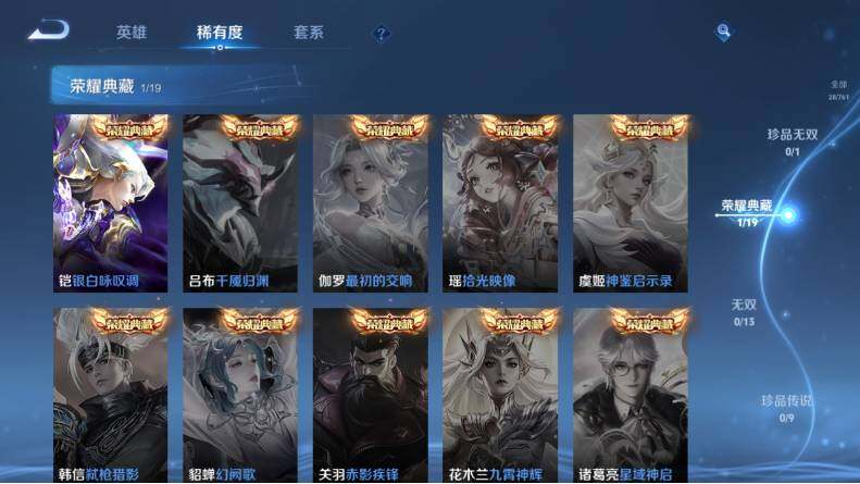 - [11740967]V8 1典藏 2无双 5珍品传说 20传说 122英雄 288皮肤 可修改实名 荣耀水晶:拾光映像(瑶典藏) 无双皮:器灵·螭龙剑,真我赫兹(瑶)(瑶无双) 珍品传说:怪盗基德,时之奇旅-孙策,兔狲·蓬尾,酷洛米之心,大耳狗之梦 传说皮:落雪白狼,黄金天蝎座,铠冥王哈迪斯,朵莉亚心动手记,李逍遥,山海·炽霜斩(李信年限),地狱之眼,一念神魔,云鹰飞将(小将军),无双飞将,音你心动-小乔,绛天战甲(鸡嘴战神),末日机甲-孙策,百相守梦(张飞),妄想实况 珍宝阁皮:妄想食味,胡桃夹子,玩趣恶龙 限定皮:愿照·九州拓(澜年限),鸣野蒿,夏侯惇霜北刀,寅虎·展翼(孙膑年限),时之彼端,飞衡(韩信年限),山海·碧波行(瑶年限),影龙天霄,五谷丰年,冰锋战神,天狼狩猎者,李小龙,孙行者 史诗皮:器灵·浮梦炉,百相守梦-百里守约,星界战将,茶境仙,苍鳞隐世,化蝶舞,鸭鸭历险记-刘禅,撼地雄心,海诺心动手记,夜落电台,奇遇星旅,蔬乡物语(鲁班七号),破空之剑,蒙犽顽岩魄,龙之律动,布丁狗之誓,遇见神鹿,紫霞仙子,苍穹之光,千年之狐,永昼,龙骑士(小龙虾),偶像歌手,冰冠公主,蒙恬荣光圣徽,高渐离燃音魔法,百解令(蒙犽),江河有灵,末日机甲-吕布,猫狗日记-孙策,猫狗日记-大乔,乱世虎臣,节奏热浪,女仆咖啡,摇滚巨星,水果甜心,绅士熊喵,天才门将,星夜王子,心灵骇客,德古拉伯爵,暗隐猎兽者,鬼剑武藏,暗渊魔法,乐园奇幻夜,天秀·启明,舞动绿茵,地狱岩魂,繁星吟游(呼啦呼啦),缤纷独角兽,乘风破浪,月团寄思,水晶猎龙者,曙光守护者,箭羽风息,金属风暴,原初追逐者,圣诞狂欢,圣诞恋歌,鹰眼统帅,魅力维加斯,赏金猎手,滕王阁序,无心,未来纪元-赵云