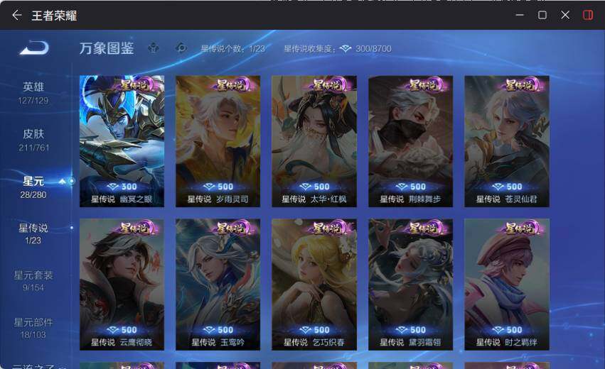 明世隐疑决卦,老夫子醍醐杖,鬼谷子原初探秘者,狄仁杰万华元夜,程咬金演武夺筹,钟馗驱傩正仪,苏烈千军破阵,李元芳银河之约,马可波罗暗影游猎,达摩沙漠行僧,兰陵王金庭之子,沈梦溪大漠名商,李元芳云中旅人,桑启海盐诗旅,裴擒虎擒涛扼浪,鲁班大师探海日志,张良古海寻踪