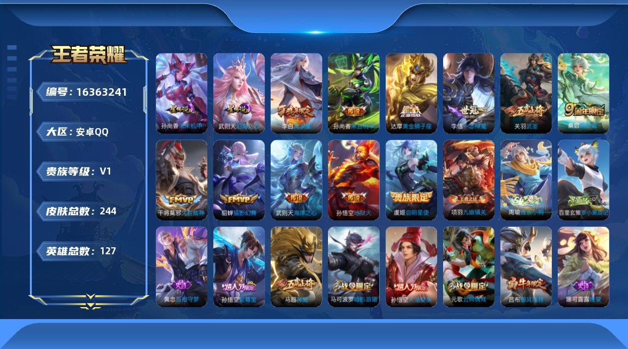[16363241]【特价出售/店主推荐 对抗路20段 1市标】安卓Q-V0-永恒钻石III段位-127英雄-244皮肤-1典藏英雄-2星传说-12传说-66史诗