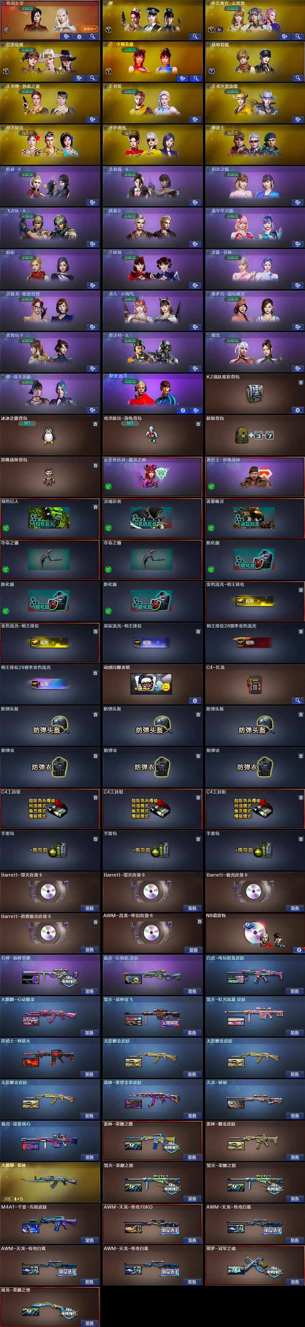 【皮肤】:幻神-巅峰荣耀,白虎-电玩粉兔皮肤,裁决-运输船 皮肤,雷神-荣耀之魄,雷神-耀金皮肤,火麒麟-雷神,火麒麟-心动糖果,毁灭-荣耀之怒*2,毁灭-战神张飞,毁灭-虹光风暴 皮肤,毁灭-英雄计划 皮肤,M4A1-千变-孔明皮肤,黑骑士-地狱火,无影耀金皮肤*3,战神-紫绶金章皮肤,天龙-秘银,AWM-天龙-传奇70KG,AWM-天龙-传奇白鲨*3,极光-能量核心,修罗-冠军之魂,屠龙-荣耀之锋